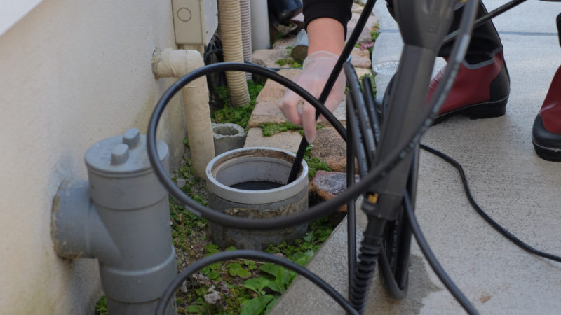 お見積りに沿って、排水管のワイヤー清掃や高圧洗浄清掃を行います。